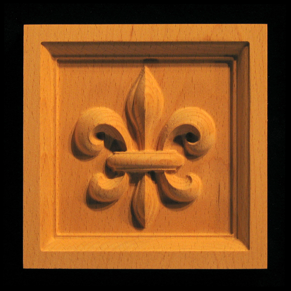 The Fleur de Lis form, French for "flower of the lily," is prominent in many French-inspired carvings and coats of arms. The form has been stylized into many derivations. At Heartwood, we use this classic French inspiration to craft ornate Fleur de Lis wood appliques, onlays, blocks, and scrollworks. We’re always willing to entertain alternative derivations by request. Make this classic design a part of your home when you purchase our amazing Fleur de Lis crown moulding, wood trim, or any other variation that we offer. You can choose from onlays, rosettes, corner blocks, stair brackets, and much more. Don’t hesitate to contact us to learn more about our Fleur de Lis wood appliques or to speak to an expert.