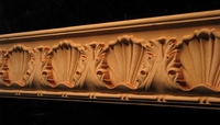 This carved wood frieze molding features the acanthus leaf paired with a classic shell design to offer a design to fit wide spaces requiring a truly classic touch. The composition is shown in a rail type profile with accent beading at the bottom. Shown at 6" width in 1.25" thickness but can be sized to suit requirements for length and width, please inquire.