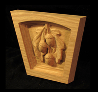 A carved keystone featuring the popular oak leaves and acorns form. Constant thickness standard. Width refers to the width at the top. Customized versions including tapered thickness and larger sizes by inquiry. 1.25 Thickness option available, just check the box below.