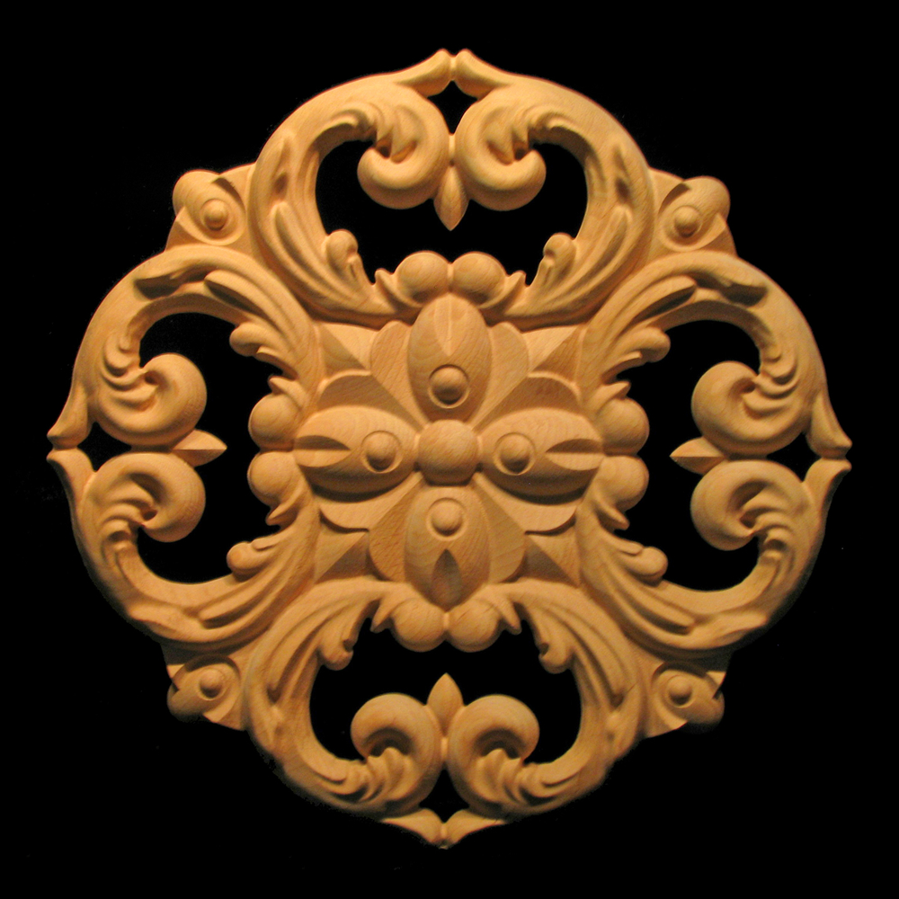 - Carved wood decorative Medallions are carved standard in unfinished material in the wood choice selected.
