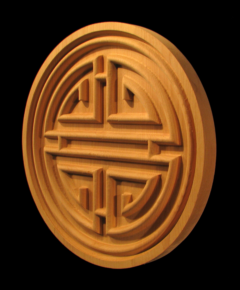 A simple medallion form incorporating the Chinese symbol (Lu) for wealth, prosperity and luck. A mid-century modern feel for sure. 3/4 thickness, square edge border. The medallion can be customized to suit client preferences by request below.