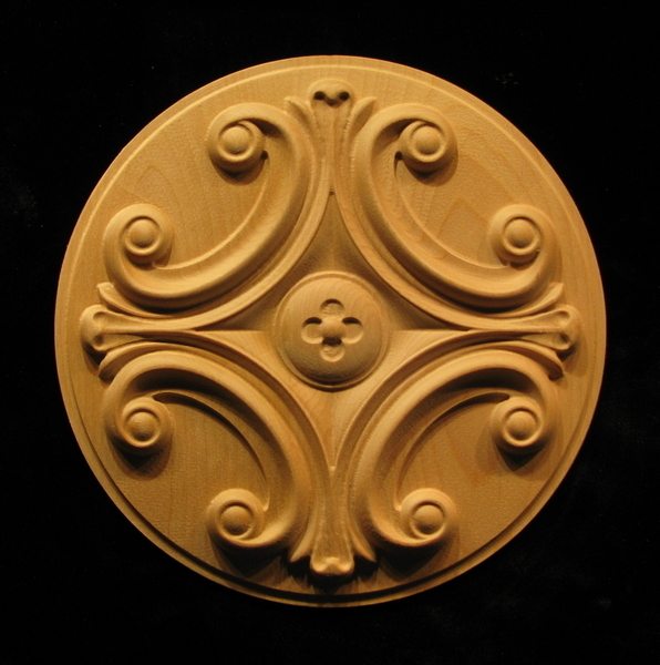 Our decorative wood medallions make beautiful onlays or rosettes (rounds). These larger options are intricately designed and generally circular in shape. The center of our medallions contains a flat (pictorial) or protruding (sculptural) design. This unique form of architectural décor was common during the Neoclassical period, which occurred in Italy and France during the mid-18th century. Today, people use medallions as centerpieces in coffered ceilings or cabinetry doors where a larger piece is required. You can also use decorative wood medallions on floors or to embellish furniture. Looking for carved wood medallions to add texture, character, and charm to your interior or exterior design? Come and browse through Heartwood Carving's collection of beautiful wood medallions to find the best adornments for your home.