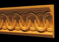 - Carved decorative trim wood Friezes and carved Mouldings are flat backed and carved in 94" lengths x width x thickness selected. Wood is in unfinished material of the wood choice selected. Friezes typically have square edge where as mouldings and crowns have profiled edges.