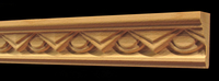 - Carved decorative trim wood Friezes and carved Mouldings are flat backed and carved in 94" lengths x width x thickness selected. Wood is in unfinished material of the wood choice selected. Friezes typically have square edge where as mouldings and crowns have profiled edges.