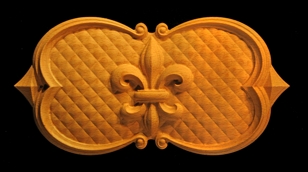 Carved wood decorative Onlays, Appliques, and Plaques are carved standard in unfinished material in the wood choice selected.