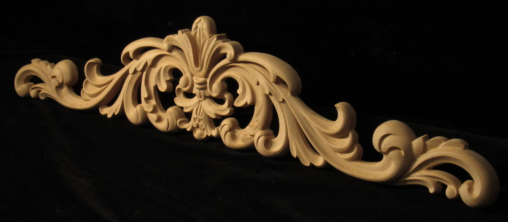 Carved wood decorative Onlays, Appliques, and Plaques are carved standard in unfinished material in the wood choice selected.