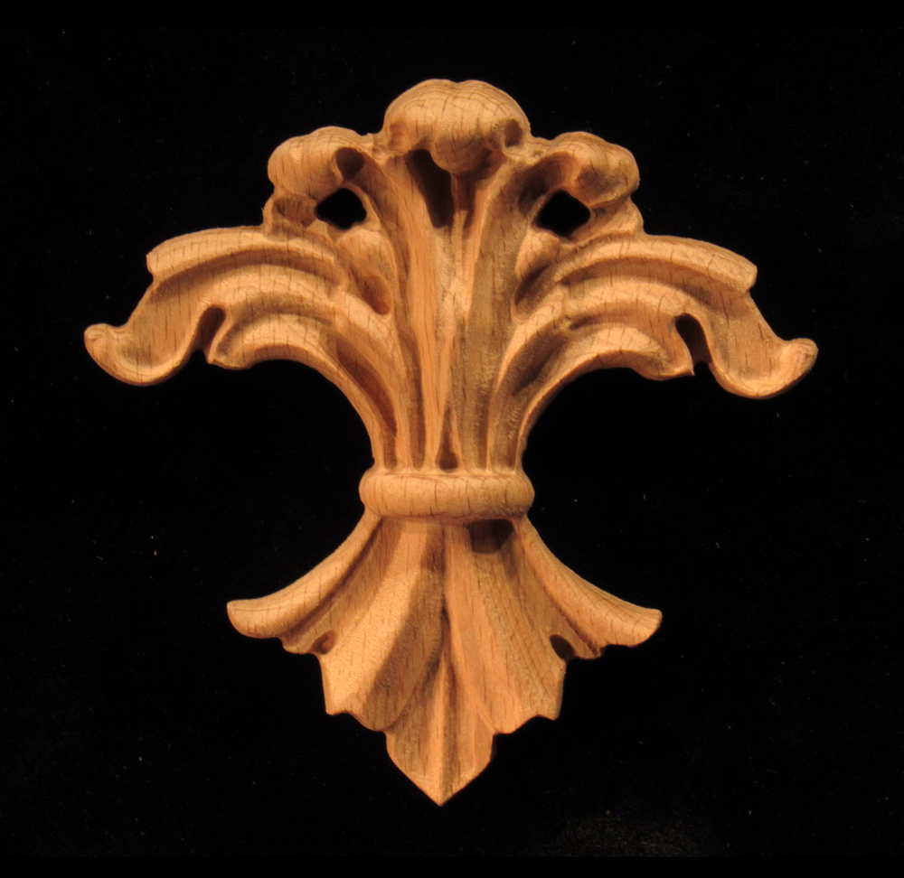 Carved wood decorative Onlays, Appliques, and Plaques are carved standard in unfinished material in the wood choice selected.