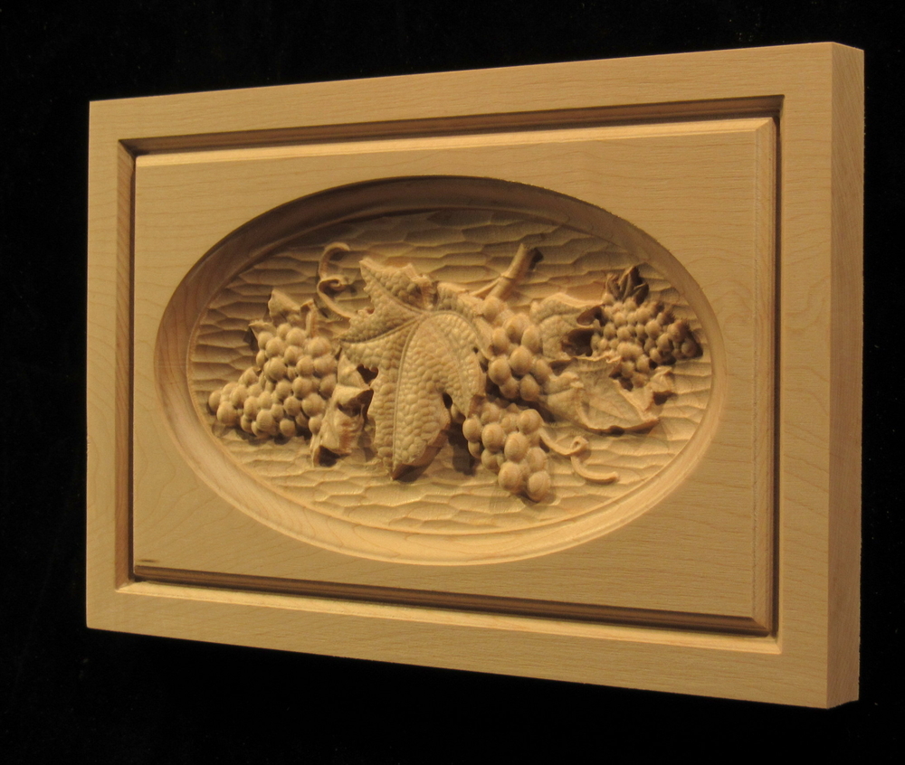 Wine Grapes in an oval setting in a rectangular panel. The panels are made to order to suit your size requirement. Please enquire with your size and wood requirements.